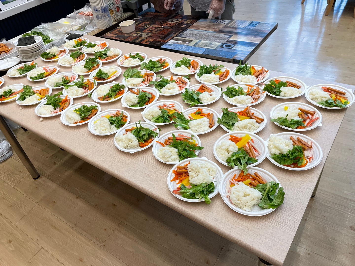 다양한 재료를 통해 어르신들 개개인의 개성이 돋보이는 김밥과 함께 준비한 어묵국을 나누어 드시면서 행복한 모습으로 다음에 진행할 요리프로그램을 기대하시며 마무리 할 수 있었습니다~!!