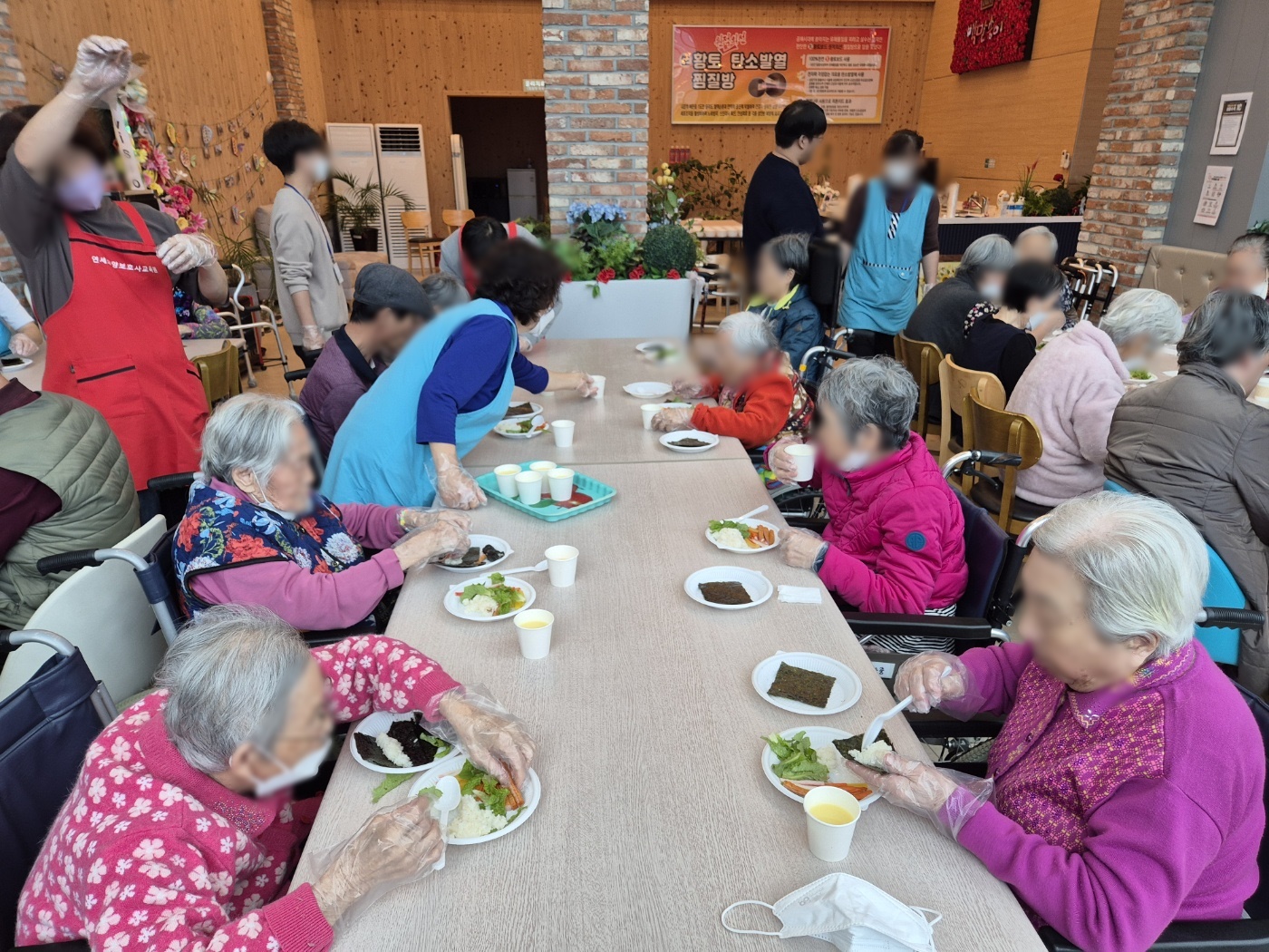 꼬마 김밥을 직접 만드시고 다른 어르신들과 함께 음식을 나누며 이야기를 하는 즐겁고 보람찬 시간을 보냈습니다😀